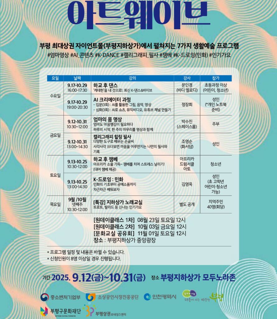 2025 부평 르네상스 문화교실 ‘아트웨이브‘ 원데이클래스 행사가